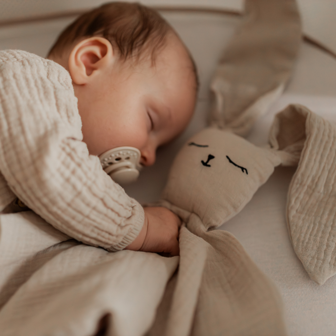 Mäkký králiček z jemného mušelínu – obľúbený spoločník na spánok aj každodenné chvíle. Mojká sa, upokojuje a dodáva bábätku pocit bezpečia.